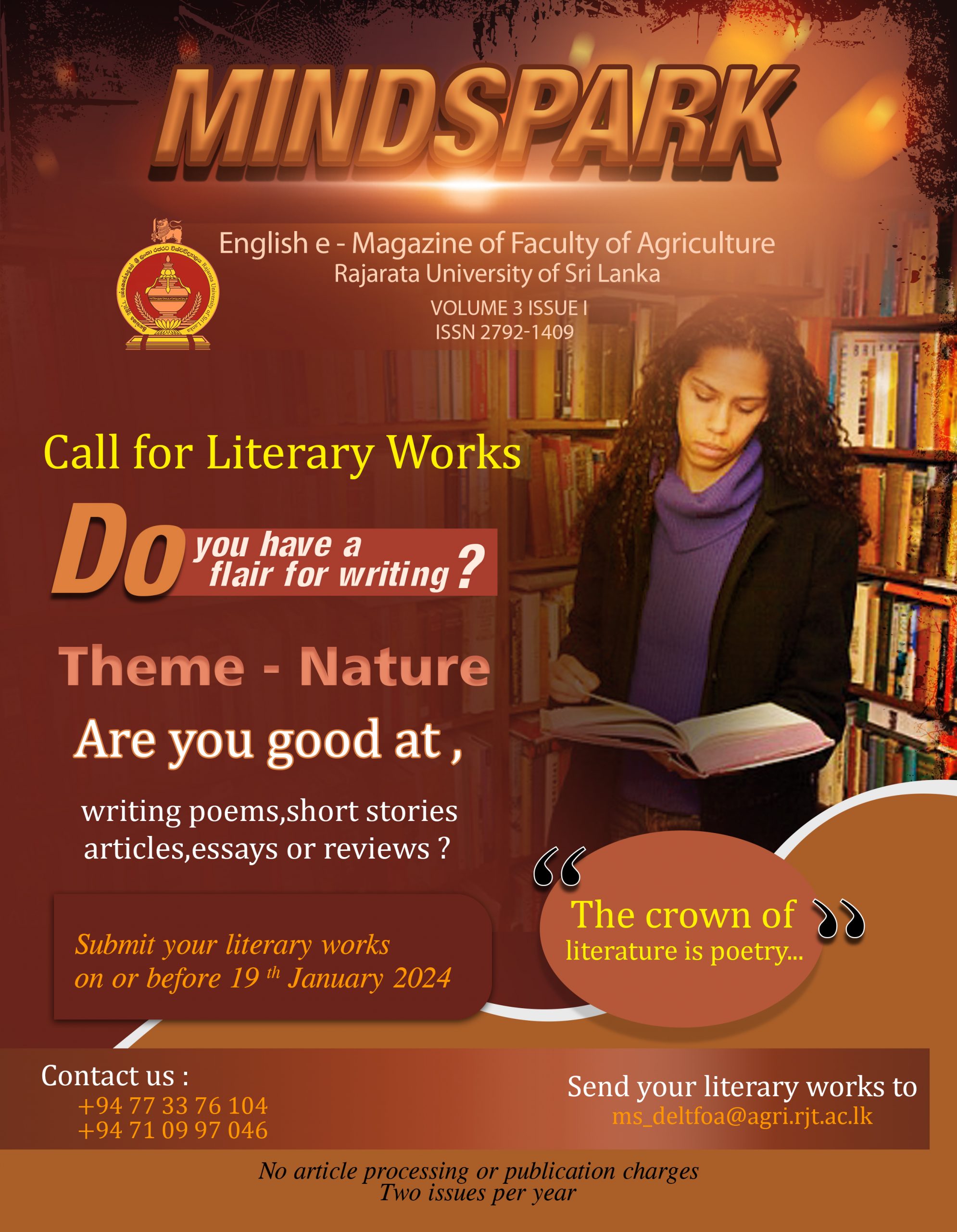Mindspark is an English e – magazine published by the Department of English Language Teaching bi-annually with an e – ISSN to improve the students’ writing skills in English. Both the academic staff members and the students are given the opportunity to publish their short reports, essays, articles, short fiction, poems etc. in the magazine.